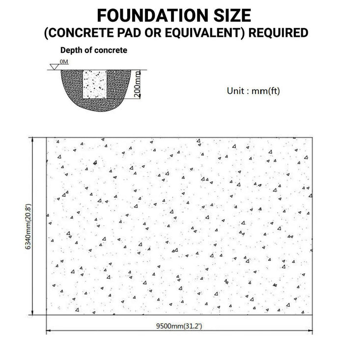 • Foundation size required: 6340mm(20.8')(W) x 9500mm(31.2')