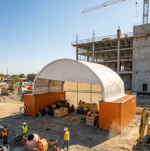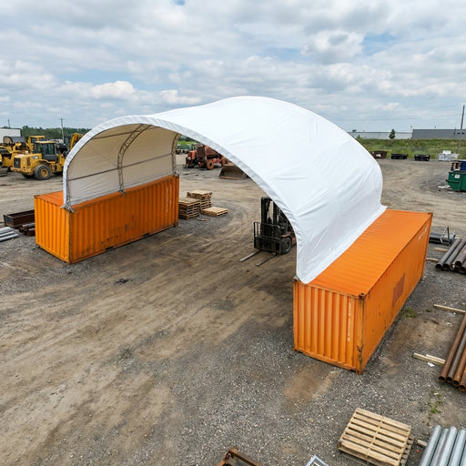 The TMG-DT4022CF8 Dual Truss Container Storage Shelter provides an easy to assemble, durable outdoor storage solution or workshop for your farm, co...