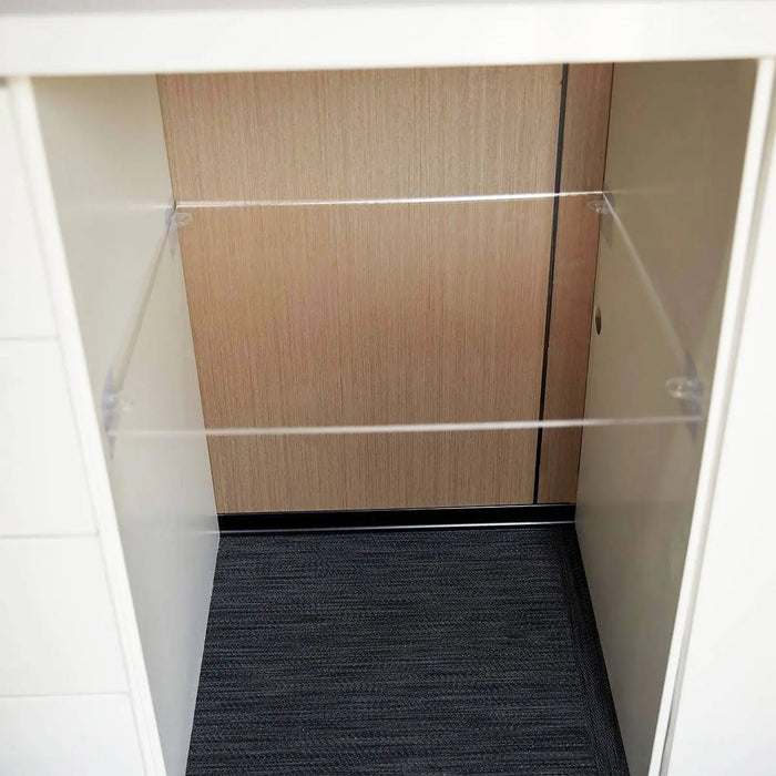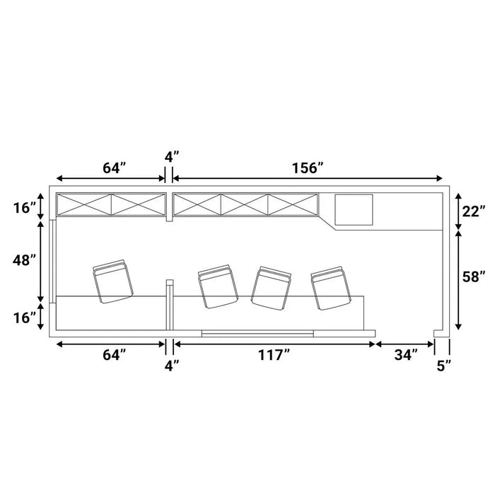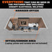 This spacious 20’ long office features a 86 sq-ft staff working area and a separate 35 sq-ft manager's office, fostering a seamless balance between collaborative endeavors and focused productivity. Furnished with a luxurious leather chair and four ergonomic sit-to-stand office chairs (all included), which make the space functional and ready for comfort from the moment it arrives.