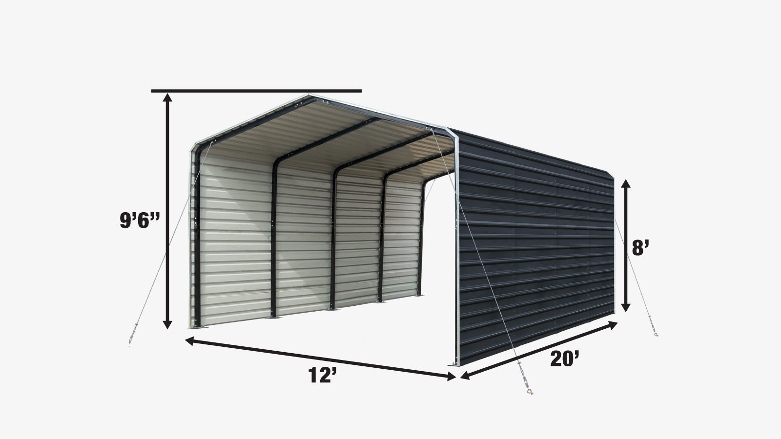 TMG Industrial 12' x 20' Abri de voiture en métal avec parois latérales fermées de 8', TMG-MSC1220F