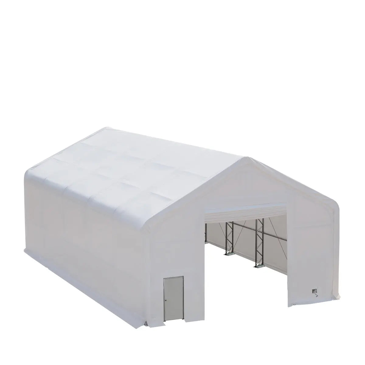 TMG Industrial 30' x 40' Peak Ceiling Storage Shelter with Heavy Duty 17 oz PVC Cover & Drive Through Doors, TMG-ST3040V