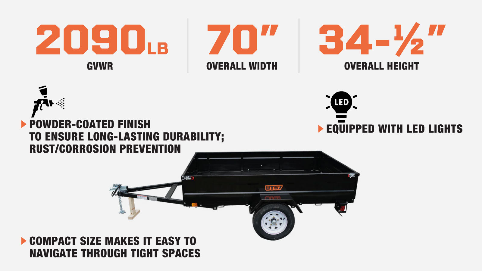 5’ x 7’ Single Axle Utility Trailer, 2090 Lb Payload Capacity, Robust Construction, Powder Coated, LED Lights, Compact Size, 2" Coupler, TMG-UT57