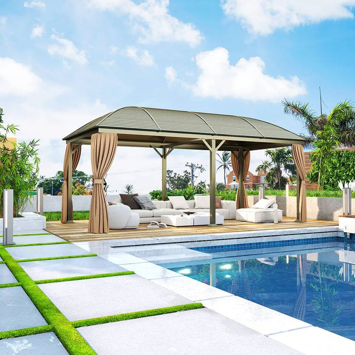 TMG Industrial 10' x 20' Hardtop Toit incurvé en acier Patio Gazebo, moustiquaires et rideaux inclus, TMG-LGZ20