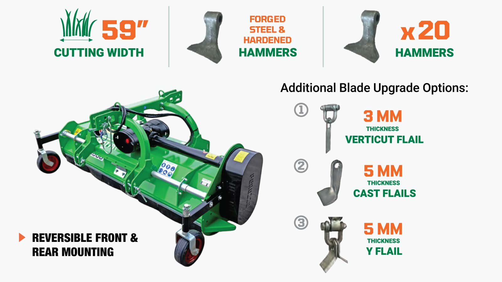 Peruzzo 59" Reversible Front & Rear Mounted Flail Mower for 35-55HP Tractors, MFR#: ELK 1600, Made in Italy TMG-PE9463