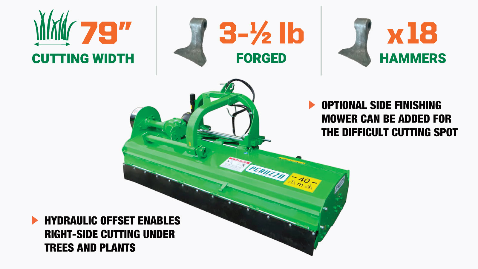 Peruzzo 79" Commercial Offset Rear Mounted Flail Mower for 60-90 HP Tractors, Category 1/2, MFR #: Bull Super 2000, Made in Italy TMG-PE9524