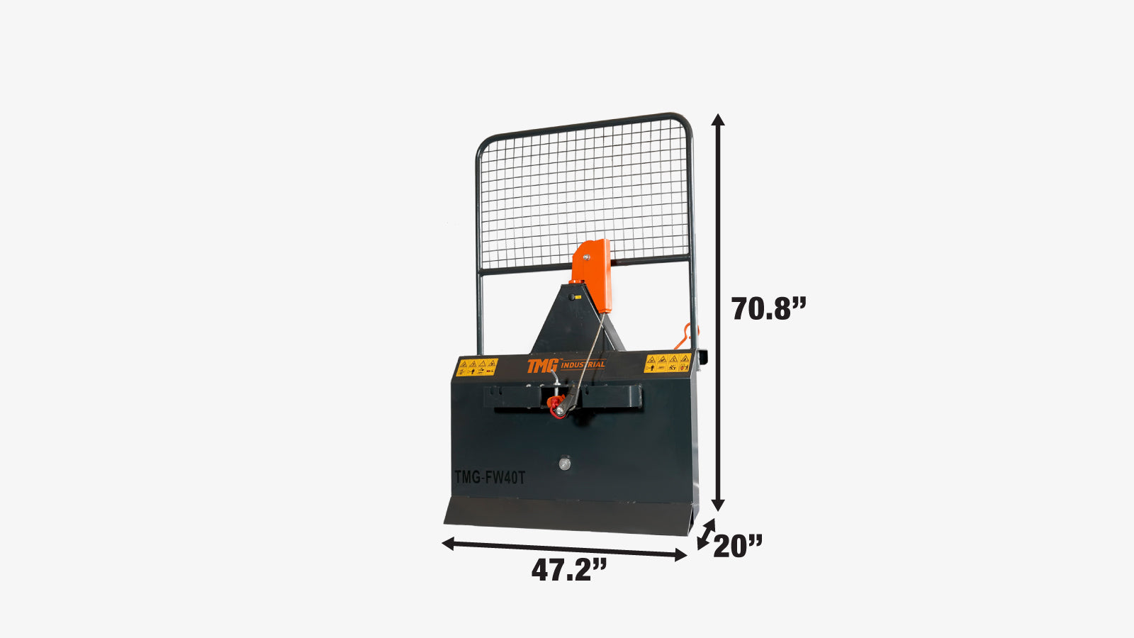 TMG Industrial Treuil de débardage forestier à attelage 3 points de 8 800 lb, tracteur de 30 à 50 HP, raccordement de catégorie 1, câble en acier de 200 pi, remorquage derrière, TMG-FW40T-specifications-image