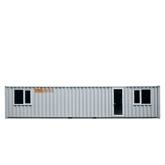 The TMG-SCO40 Custom Built Steel Container Office revolutionizes the concept of workspace. This shipping container office combines affordability, sustainability, and modern design to create a stylish and functional solution for your remote and/or onsite office needs. Compared to traditional building methods, this solution offers significant savings without compromising on quality. And by repurposing shipping containers, we contribute to a more sustainable future by reducing waste and minimizing environmental impact.