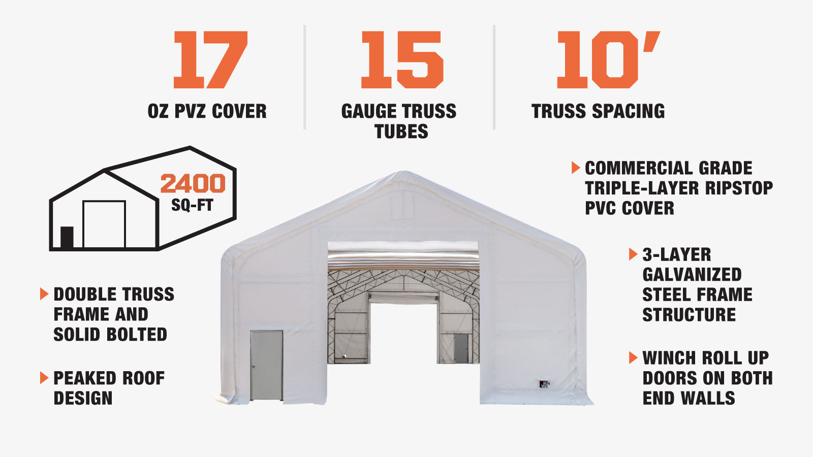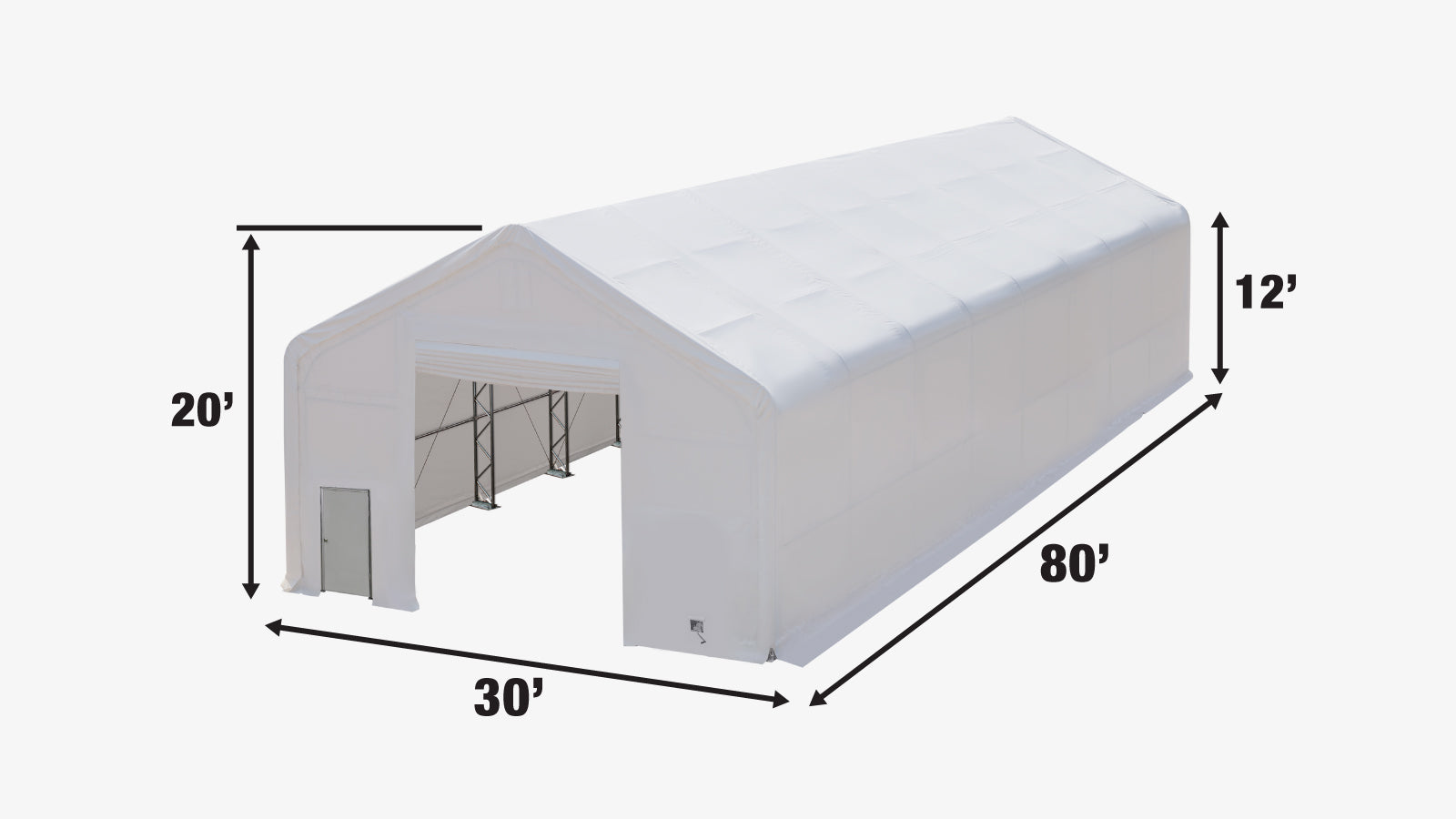 TMG Industrial 30' x 80' Abri de stockage à double treillis avec couverture en PVC robuste de 17 oz et portes traversantes, TMG-DT3081