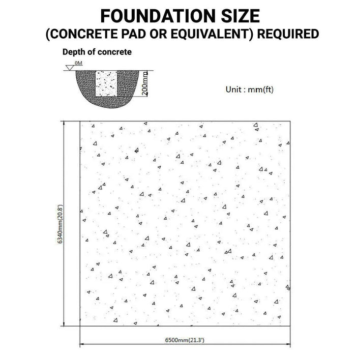 • Foundation size required: 6340mm(20.8')(W) x 6500mm(21.3')