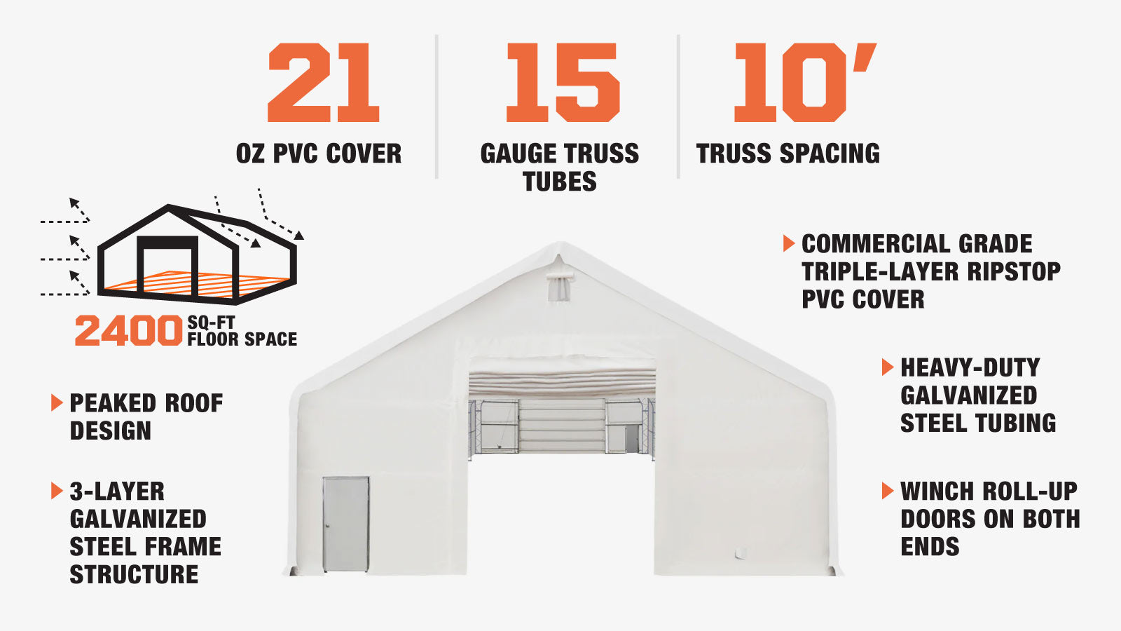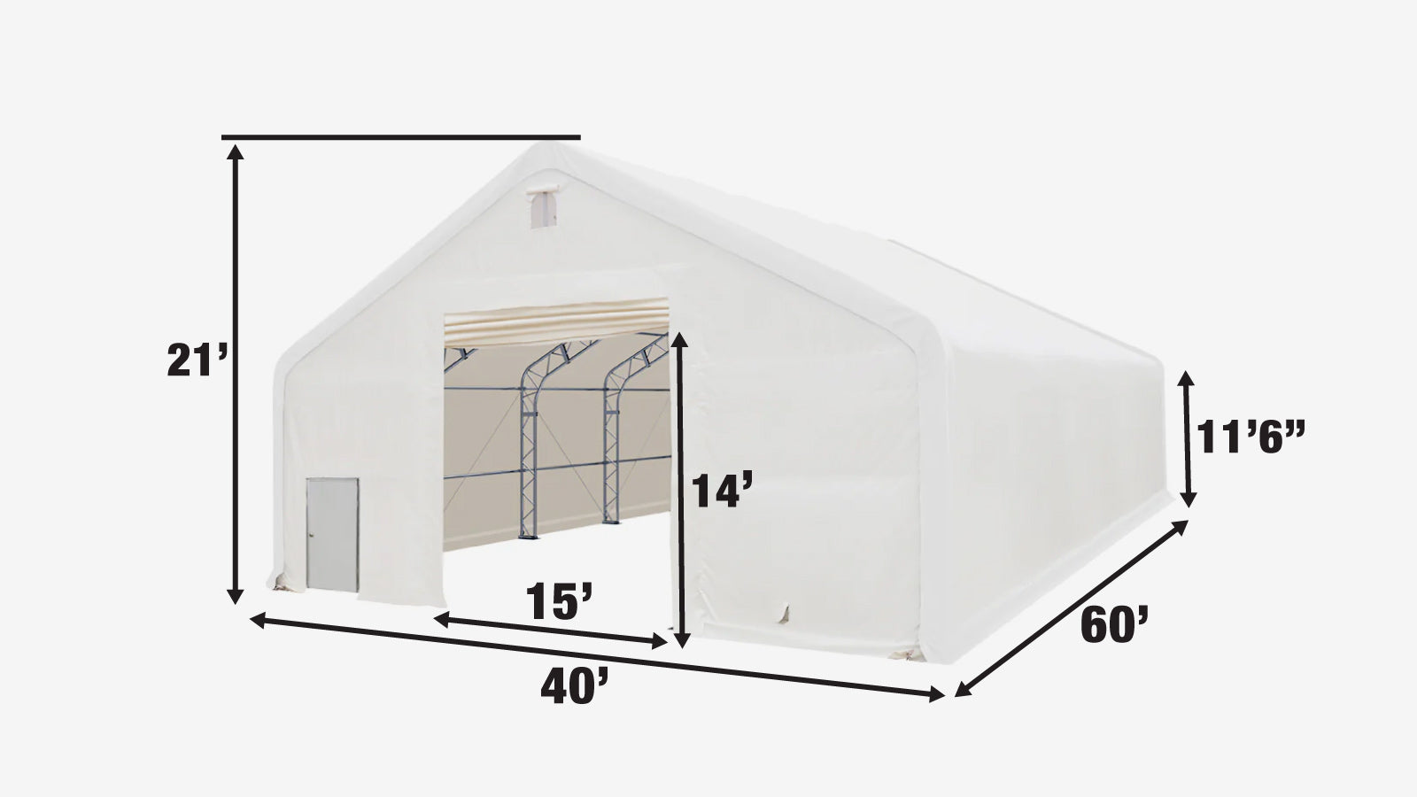 40' x 60' Dual Truss Storage Shelter with Heavy Duty 21 oz PVC Cover & Drive Through Doors, TMG-DT4062 (Previously TMG-DT4061)