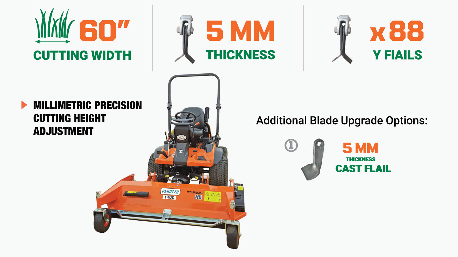 Peruzzo 58" Front-Mounted Flail Mower for Kubota Tractors, MFR #: TEG Special 1400 HD, Made in Italy TMG-PE9340