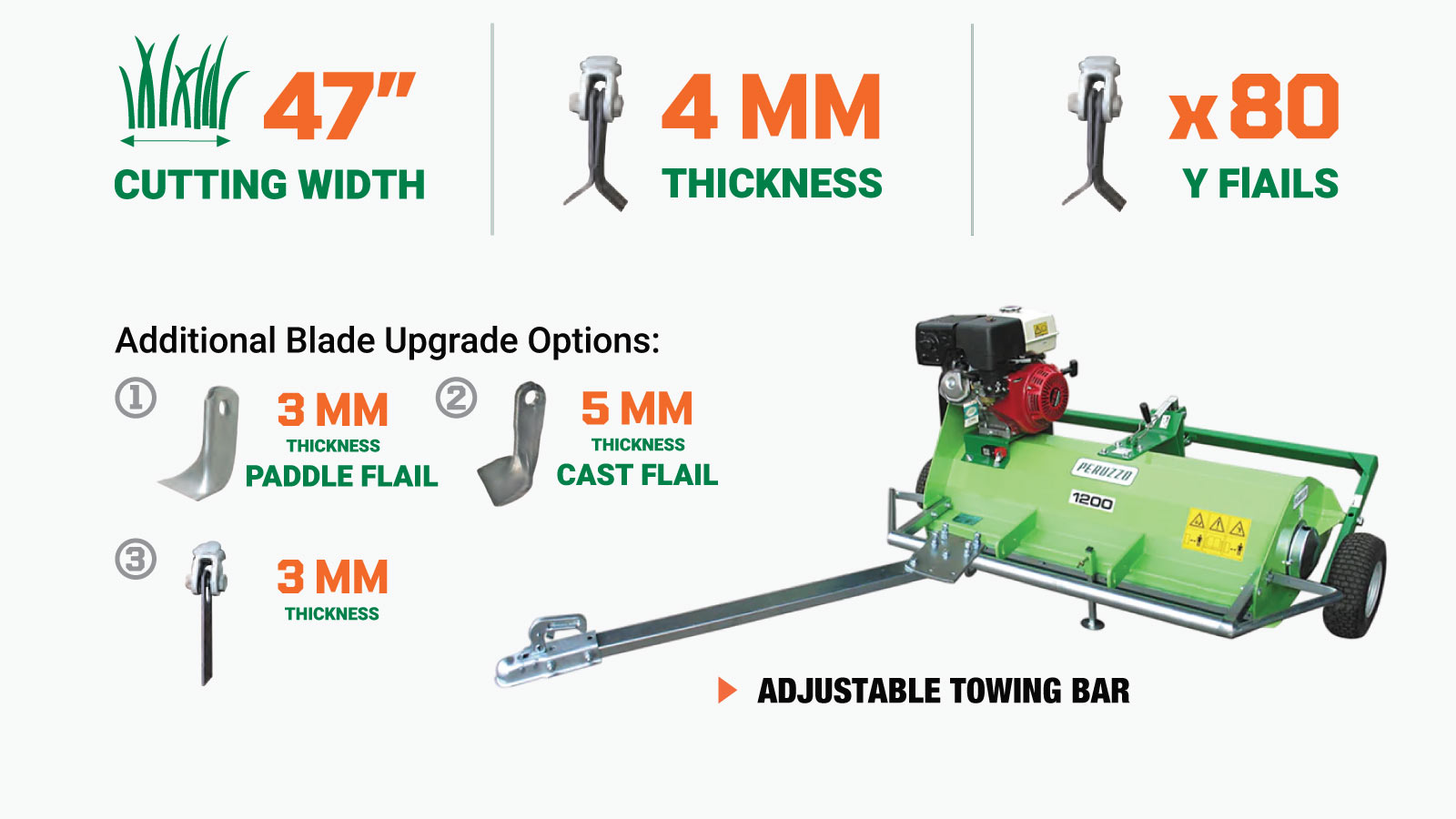 Peruzzo 47" Towed Behind Flail Mower for Quad & ATV with 13 HP Honda GX390 Engine, MFR# MotoFox 1200, Made in Italy TMG-PE9449