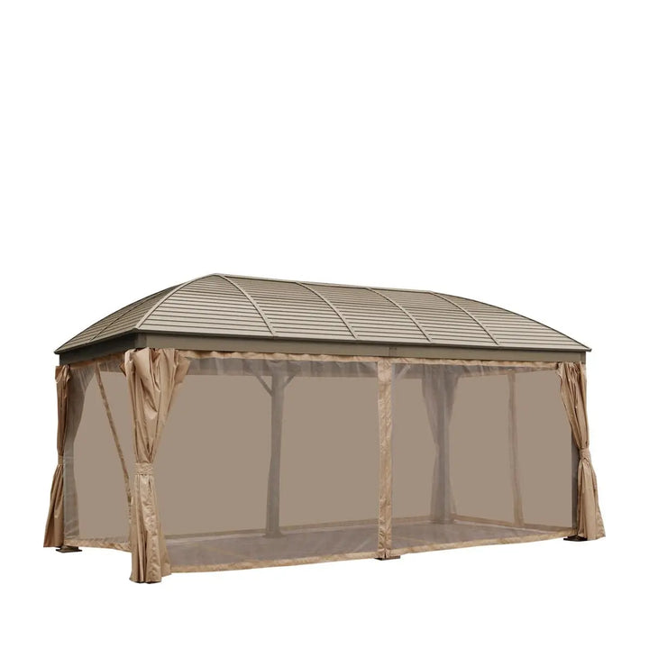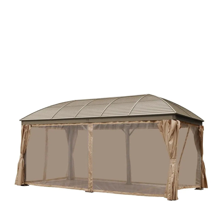 10’ x 20’ Hardtop Curved Steel Roof Patio Gazebo, Mosquito Nets & Curtains Included, TMG-LGZ20