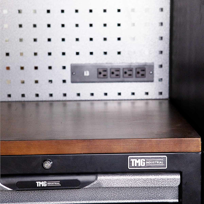 12’ Extreme-Duty Steel Garage Tool Chest w/Pegboard, Power Outlets, USB Port, Magnetic Motion LED Lamps, Cabinets & Roll-Out Tool Chest, TMG-WBM12