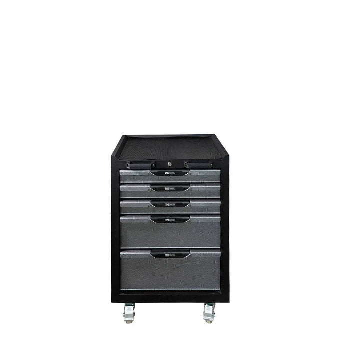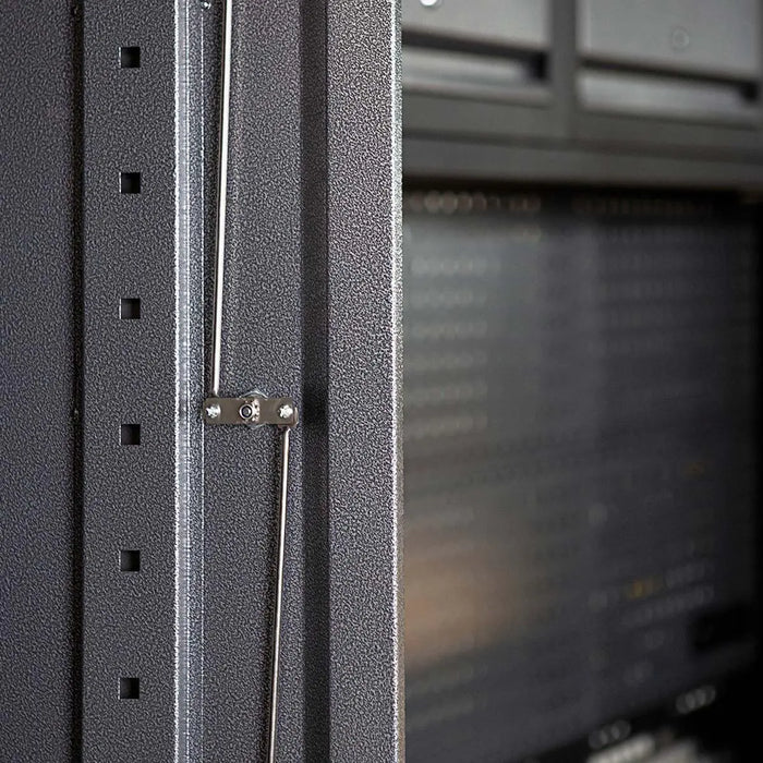 Equipped with pegboards on the interior of each cabinet door as well as a main eight panel pegboard backdrop. Drawers come with 100 lb/300 lb capacity and individual locking mechanism for the protection of valuable tool and parts inventory. This tool chest is designed for high-traffic commercial use and also includes a mini roll-out tool chest for dynamic shop use.