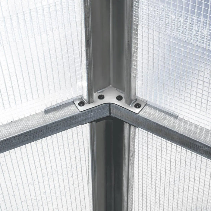 Each truss is spaced 39" apart, and all are connected by bolts, ensuring the stability and durability of the structure. The ground frame is secured by saddle clamps and expansion bolts, further adding to the greenhouse’s overall strength. Whether you're a seasoned gardener or just starting out at home, this greenhouse provides the perfect environment for your plants to flourish with strength, health, and vibrancy.
