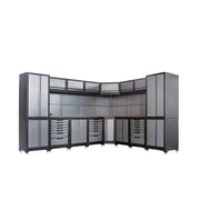 The TMG-WBM15 Extreme-Duty Steel Garage Corner Tool Chest is a versatile, commercial strength tool storage and work surface solution for your home garage, repair shop, automotive business or any other industrial setting. Seven cabinets and 21 lockable sliding drawers of varying sizes provide maximum storage possibilities, and a beech wood finished work surface for long term smooth workflow that is resistant to scratches, impact and wear.