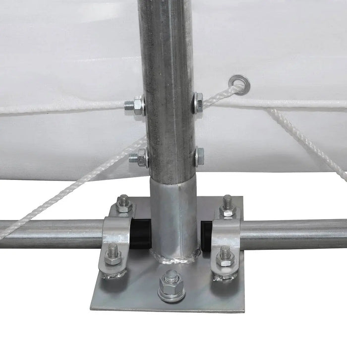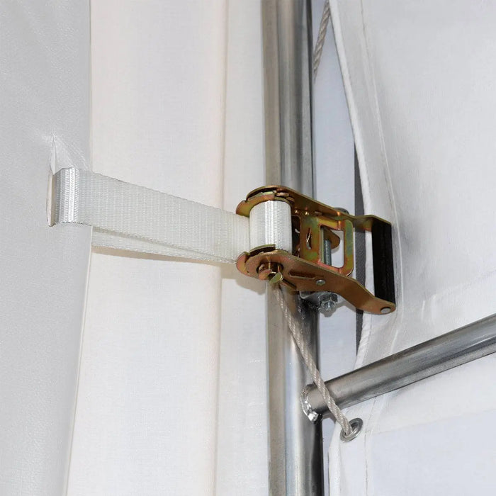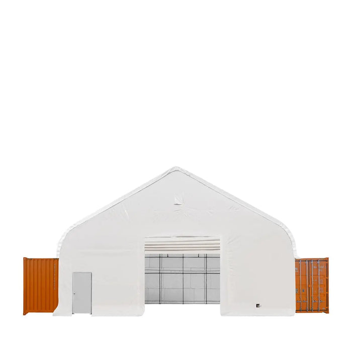 Pro Series 50' x 40' Fully Enclosed Dual Truss Container Shelter with Heavy Duty 32 oz PVC Cover, Front Wall and Back Wall, TMG-DT5040CG