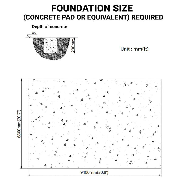 • Foundation size required: 6300mm(20.7')(W) x 9400mm(30.8')